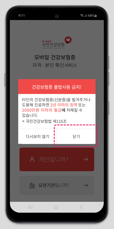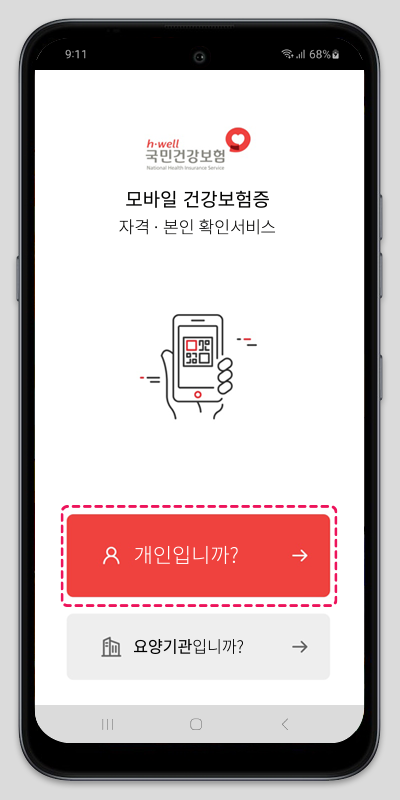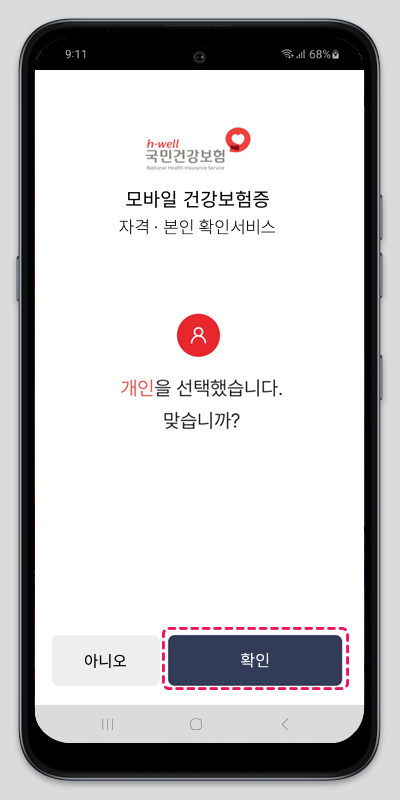 3. 개인이 병원에서 사용하는 건강보험증으로 개인을 선택하시면 됩니다.