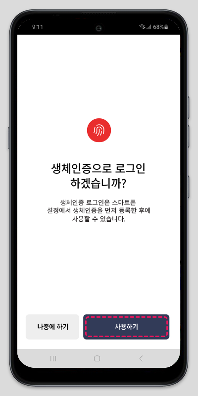 18. 비밀번호 입력이 번거롭다면 지문이나 얼굴인식 등 생에 로그인을 사용하시며 편리하게 이용하실 수 있습니다.