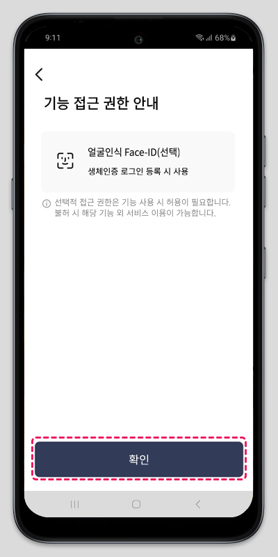 7. 기능 접근 권한 안내의 내용을 확인하시고 확인 버튼을 눌러 주시면 됩니다.